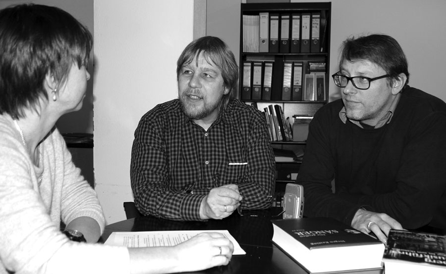 Tobias Könemann (Mitte) und Gerrit Wedel im Gespräch mit Barbara Haack. Foto: Jörg Lohner
