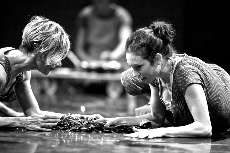 Nach dem Ergreifenden Groteskes: In „Gustavia“ schluchzen Mathilde Monnier und La Ribot bis zur Schmerzgrenze und stoßen sich gefühlte hundert Mal slapstickartig den Kopf an einem Brett. Übertreibung war Teil des Konzeptes. Getragen wurde das Spiel von der großartigen körperlichen Präsenz der beiden „Grandes Dames“ des zeitgenössischen Tanzes. Bei der tschechischen Compagnie „420people“ ging es zunächst sportlich zu. Doch dann zauberten Václav Kunes und Natasa Novotná ein zartes Gespinst aus Bewegungen auf die Bühne, ein gewaltiger Kontrast zur energiegeladenen Ensembleleis-