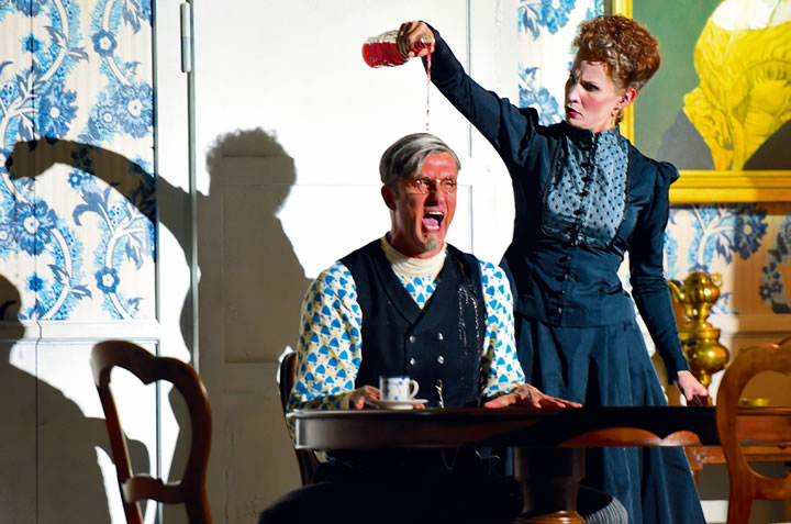 Martin Busen als Stepan, Evelyn Krahe als Warwara. Foto: Hans Jörg Michel