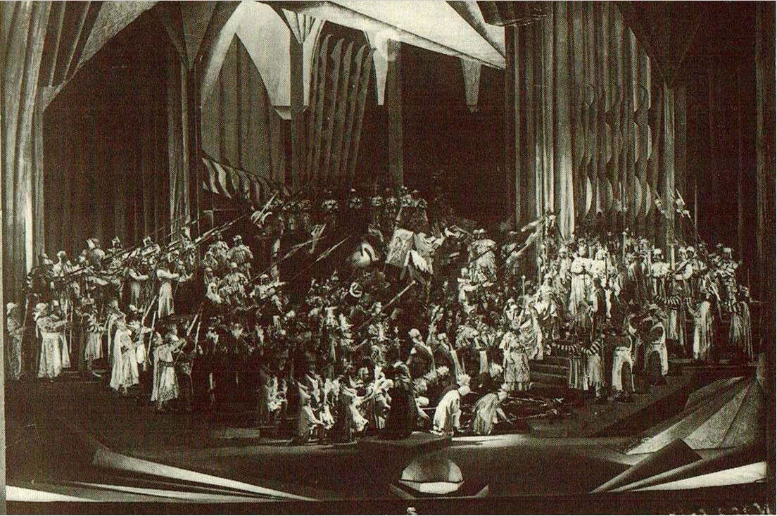 „Lohengrin“ am Bolschoi Theater Moskau 1923. Szenenbild (Bühnenbild: Fjodor Fjodorowski)