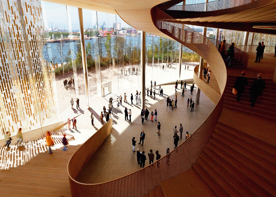 Die Entscheidung der 16-köpfigen Jury, der auch Kratzer angehörte, war einstimmig und der Enthusiasmus für den ikonischen Entwurf groß, auch wenn das Kopenhagener Architekturbüro gerade ein ähnliches Gebäude in Prag baut. Doch während die „Moldauphilharmonie“ leicht statisch wirkt, überzeugt der BIG-Entwurf für Hamburg durch seine organische Anmutung, die einen fließenden Übergang der als begehbare grüne Terrassen gestalteten Dächer mit den Freiflächen des Baakenhöft erlaubt. Das neue Opernhaus soll bis Mitte der 2030er-Jahre auf einer Landzunge in der HafenCity realisiert werden, umgeben von Wasser und Hafenflächen. BIG-Gründer Bjarke Ingels drückt es etwas poetischer aus: „Die Oper präsentiert sich wie eine Landschaft konzentrischer Terrassen – ausgehend von einem pulsierenden musikalischen Herzen, die sich wie Wellen auf der Meeresoberfläche in den Hafen ausbreiten.“