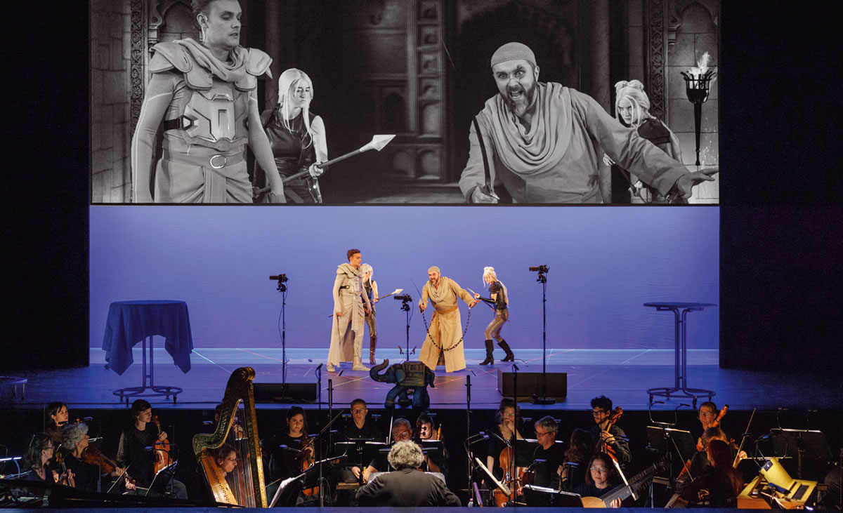 Barockoper heißt immer auch Bühnenzauber. Im 18. Jahrhundert wollte man im Theater nicht nur spektakuläre Stimmen hören, sondern auch die neuesten Bühneneffekte sehen. Bei der Eröffnung der 48. Internationalen Händel-Festspiele Karlsruhe lässt Regisseur Kobie van Rensburg in „Tamerlano“ Teppiche fliegen und Elefanten über die Bühne schreiten. Die Leinwand wird zum Bühnenbild, das Bluescreen-Verfahren zum Zauberkasten. Aber auf Dauer ermüden die digitalen Kunststückchen. Dem über vierstündigen Abend fehlt der szenische Fokus und die Unmittelbarkeit. Zum eigentlichen Zauberer wird der im Sitzen dirigierende René Jacobs. Was er mit dem Freiburger Barockorchester im Orchestergraben kreiert, ist weniger effektgetrieben als vielmehr vielschichtig und differenziert. Musikalisch erfährt man mehr vom Innenleben der Figuren als visuell – von Schmerz und Verzweiflung, von Annäherung und wachsender Distanz.