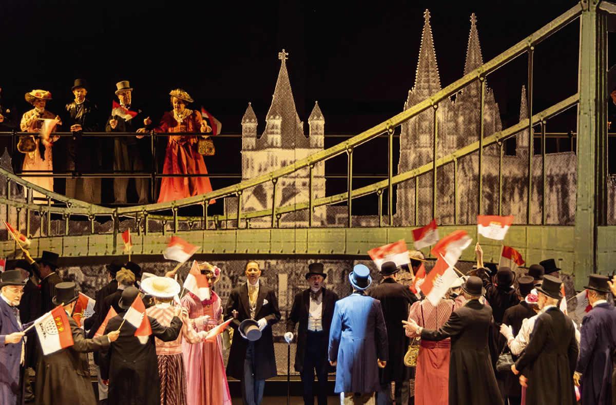 Dass die Oper Köln an diesem Abend anders tickt als sonst, merkt man schon vor der Vorstellung. Das Publikum ist verkleidet, und auf der Herrentoilette müht sich eine kräftig gebaute Dame in prächtigem Kleid, ihren viktorianischen Rock zu raffen, um sich am Pissoir zu erleichtern. Verdutztes „Na so was?“ quittiert sie/er mit gebrummelten „Wat mutt, datt mutt“. Seit 1874 zeigt die Bühnenspielgemeinschaft des Kölner Männergesangsvereins während der Karnevals-Session im städtischen Opernhaus das „Divertissementchen“. Sämtliche Soli, Chor- und Balletteinlagen gestalten Mitglieder des Männergesangsvereins op Kölsch. Komisch-parodistisch verarbeitet werden Persönlichkeiten und Ereignisse der Stadtgeschichte sowie klassisches Repertoire. Die aktuelle Produktion „E Leve för Kölle“ widmete sich dem Leben von Konrad Adenauer anlässlich dessen 150. Geburtstags. Der gebürtige Kölner war Oberbürgermeister der Stadt, erster Bundeskanzler der BRD und Ehrenmitglied des Männergesangsvereins. Dem Verein war es folglich Ehrensache, dem Jubilar einen Gedenkgottesdienst im Kölner Dom und das diesjährige „Zillche“ – benannt nach der Schutzheiligen und dem Vereinsheim Cäcilia Wolkenburg – zu widmen.